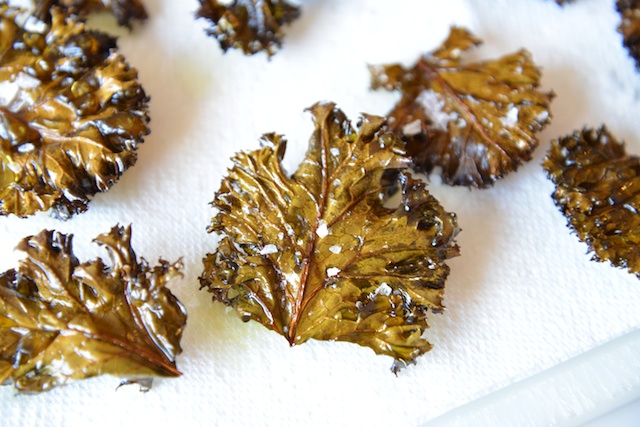 Kale chips might be a little bit 2013 by now, but they are still easy and delicious. So if you have never made them, I urge you to have a go. I used curly purple kale, but any variety works for this recipe.