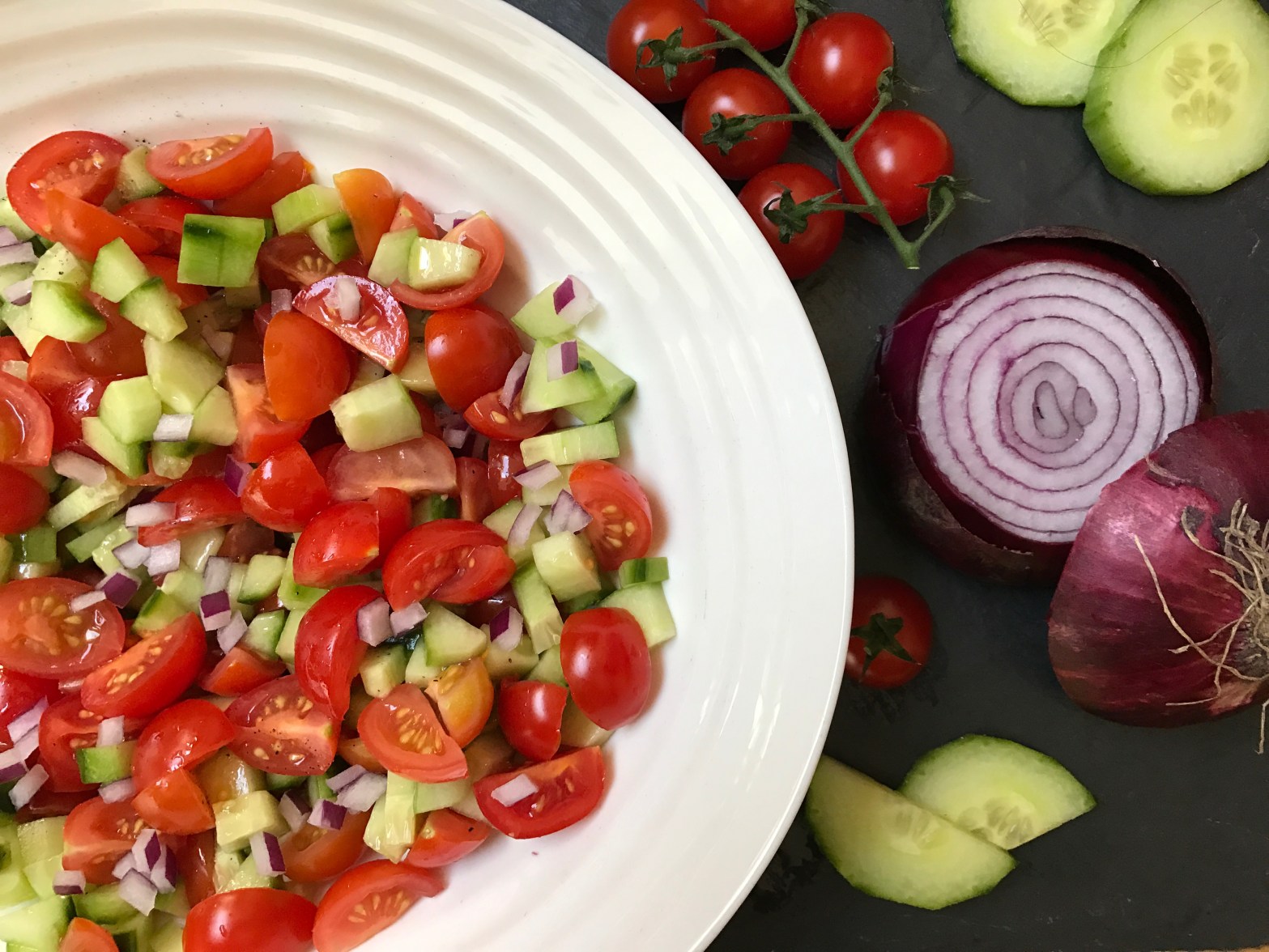 This chopped salad is very popular not just in Israel but all over the Middle East. It comes together in just a few minutes but will also benefit from resting in the fridge for an hour or two.