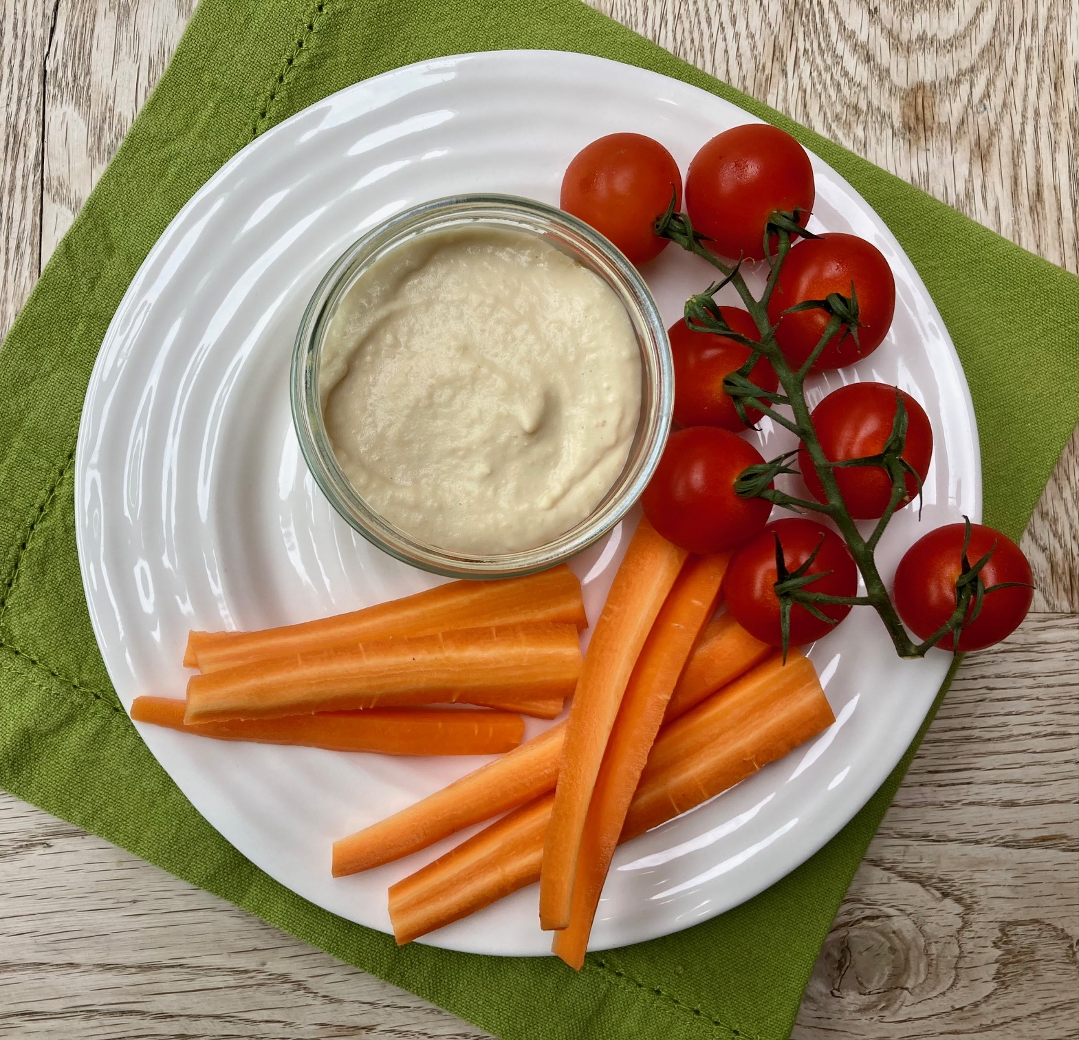 1 x 400g tin cannellini beans, drained and rinsed 2 tablespoons tahini 2 tablespoons lemon juice (or the juice of ½ lemon) 2 tablespoons water 3 tablespoons olive oil 1 clove of garlic, crushed Large pinch of salt