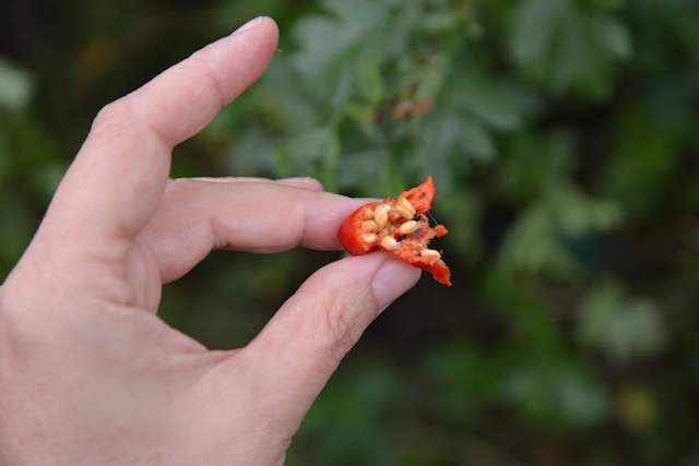 Rosehip berries are used in remedies for osteoarthritis and are also valued for their high levels of vitamin C. In the past, before imported fruit became readily available, rosehip berries were often used to make a syrup that could be consumed in winter months as a vitamin C supplement. I tasted a berry – not unpleasant, but not terribly flavorful either.